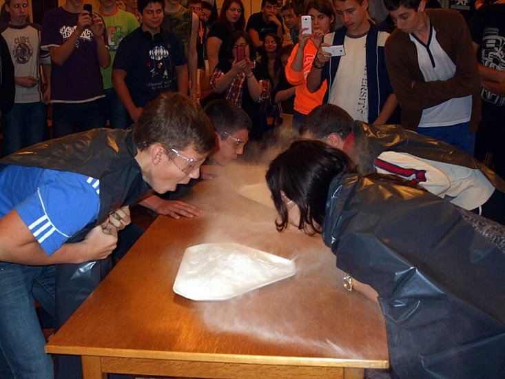 A kilencedikesek izgatottan várakoztak a díszterem ajtaja előtt, amíg mi bent az utolsó simításokat végeztük. Háromnegyed háromra teljesen megtelt a terem, megkezdődött a kitartó versengés a győzelemért. A feladatok között szerepelt habverés, szelfizés, lufiborotválás, sminkelés és karaoke is. Láthatóan jól érezték magukat a gólyák. A zsűri tagjai voltak: Szűcs Lajos igazgatóhelyettes úr, Benke Mária tanárnő, Virág Enikő és Szabó Ádám. Mielőtt a zsűri nyilvánosságra hozta a végeredményt, a gólyák közösen mondták el az esküt. Közben körbeadták az iskola „alapkövét”. Nem volt más hátra, csak az, hogy kiderüljön, melyik osztály nyerte meg a legnagyobb tortát. A negyedik helyen a 9. D osztály végzett. Őket előzték meg a 9. B tanulói. A 9. E osztály már tortát kapott, hiszen ők végeztek a második helyen. A gólyabál győztese a 9. A osztály lett. Mindenki örömmel fogyasztotta el a megérdemelt édességet.