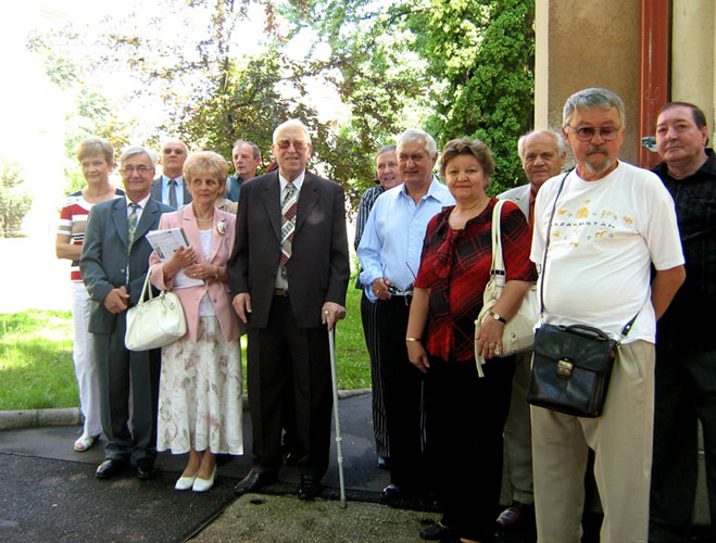 Ebben az évben - rendhagyó módon - a nyárra is jutott a találkozókból. Kedvcsinálóként beszámolunk Sipiczky Frigyes tanár úr 1968-as 4. B osztályának összejöveteléről, ahonnan képeket is kaptunk. Így 45 év után is örömmel és nagy számban jelentek meg az osztály tagjai a Vízmű épületében. A boldog ölelkezéseket követően rendhagyó osztályfőnöki órára gyülekeztek a régi teremben. A névsorolvasás után - a régi foglalkozások hangulatában - az érett diákok áhítattal hallgatták Sipiczky tanár úr színes előadását, bölcs gondolatait tudásról, szakmáról, történelemről, emberségről. A régi derűvel csattant fel a kacagás a tanár úr megszokott, fanyar humorával fűszerezett fordulatokon.