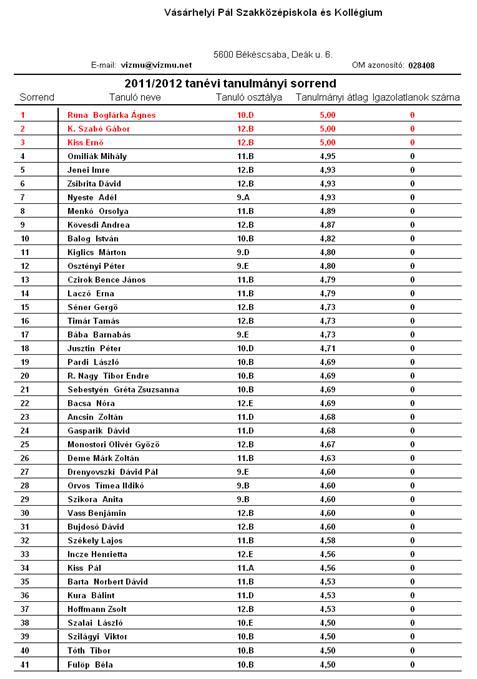 Kedvcsinálóként visszaidézzük és közzétesszük az elmúlt tanév legjobb tanulóinak nevét.