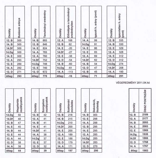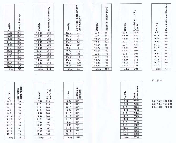 A helyezett osztályok a tanév végén pénzjutalmat és szabadnapot kapnak, ezzel segítjük az osztálykirándulásukat.