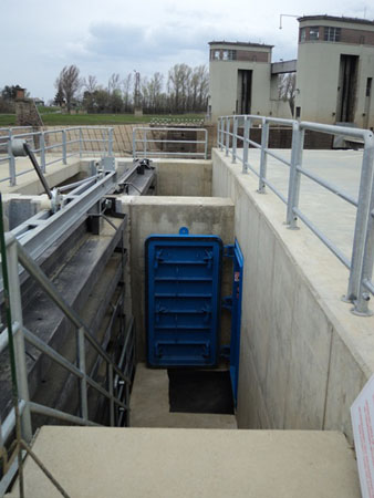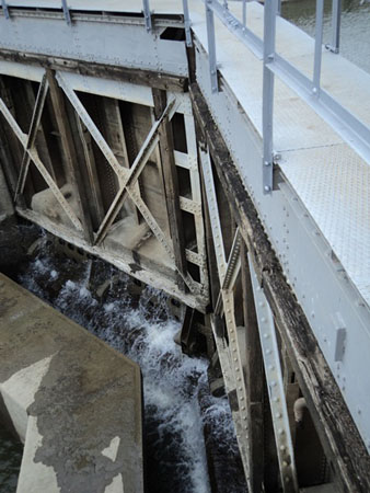 A továbbiakban átsétáltunk a vízerőmű vízkivételi helyéhez, ahol egy gereb biztosítja a folyó által szállított uszadékok felfogását, így védve a gépészeti berendezéseket.