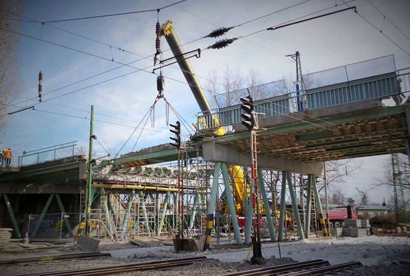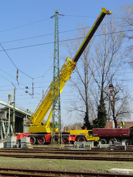 Múlt hét szombaton a délelőtti órákban vízműsök kisebb csoportja gyűlt össze a békéscsabai vasútállomásnál, hogy megfigyelje az Orosházi úti felüljáró bontási munkálatait. A teljes hétvégén át tartó vágányzár lehetővé tette, hogy a sínekről figyeljük az eseményeket. Szerencsére jó időt fogtunk ki. A helyszínre érkezve a Közgép építésvezetője, Czaga Róbert bemutatta nekünk a híd alapjait készítő cölöpfúrógépet. Láttuk, hogyan törik fel a 35 cm-es betonréteget, és azt is, hogyan emelik ki az acélgerendákat 200 tonna teherbírású daruval. A bontási munkák ideje alatt a vágányokat fóliával takarták le, hogy az ágyazat ne szennyeződjön. Láttunk cölöpöző gépet, amely 60 m hosszú cölöpöket fog készíteni.