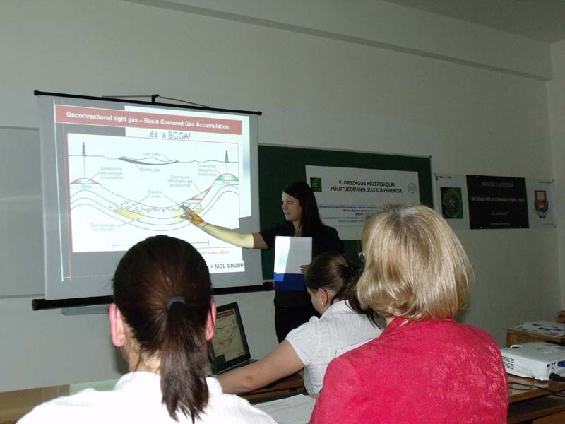 A konferencia 2 napos volt, a témaköröknek megfelelően szekciókra bontva. A lányok a tavaszi nevezéstől kezdve készültek, olvasták a főként angol nyelvű szakirodalmakat, fúráslátogatáson vettek részt, miközben formálódott az előadás. Szeptemberben kezdhették meg iskolai eszközökkel (mikroszkóppal, szitasorral) a MOL-tól kapott minták elemzését. Munkájuk olyan sikeresnek bizonyult, hogy nemcsak érthetően ismertették az egyébként még kevesek által ismert és értett témát, de az egyetemi tanárokból álló zsűri és a vendégek kíváncsiskodó kérdéseire is remekül válaszoltak. Végül a zsűri értékelése szerint I. helyezést értek el a Meteorológia, energia, fény témakörben!